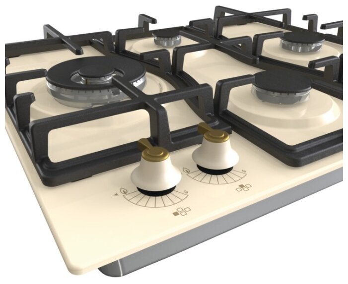 эмалированная поверхность; 4 конфорки; независимая установка; электроподжиг; газ-контроль; чугунные решетки; поворотные переключатели; ШхГ: 60х52 см