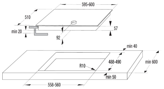 - Размеры для встраивания (ШхГ): 56 x 49 см