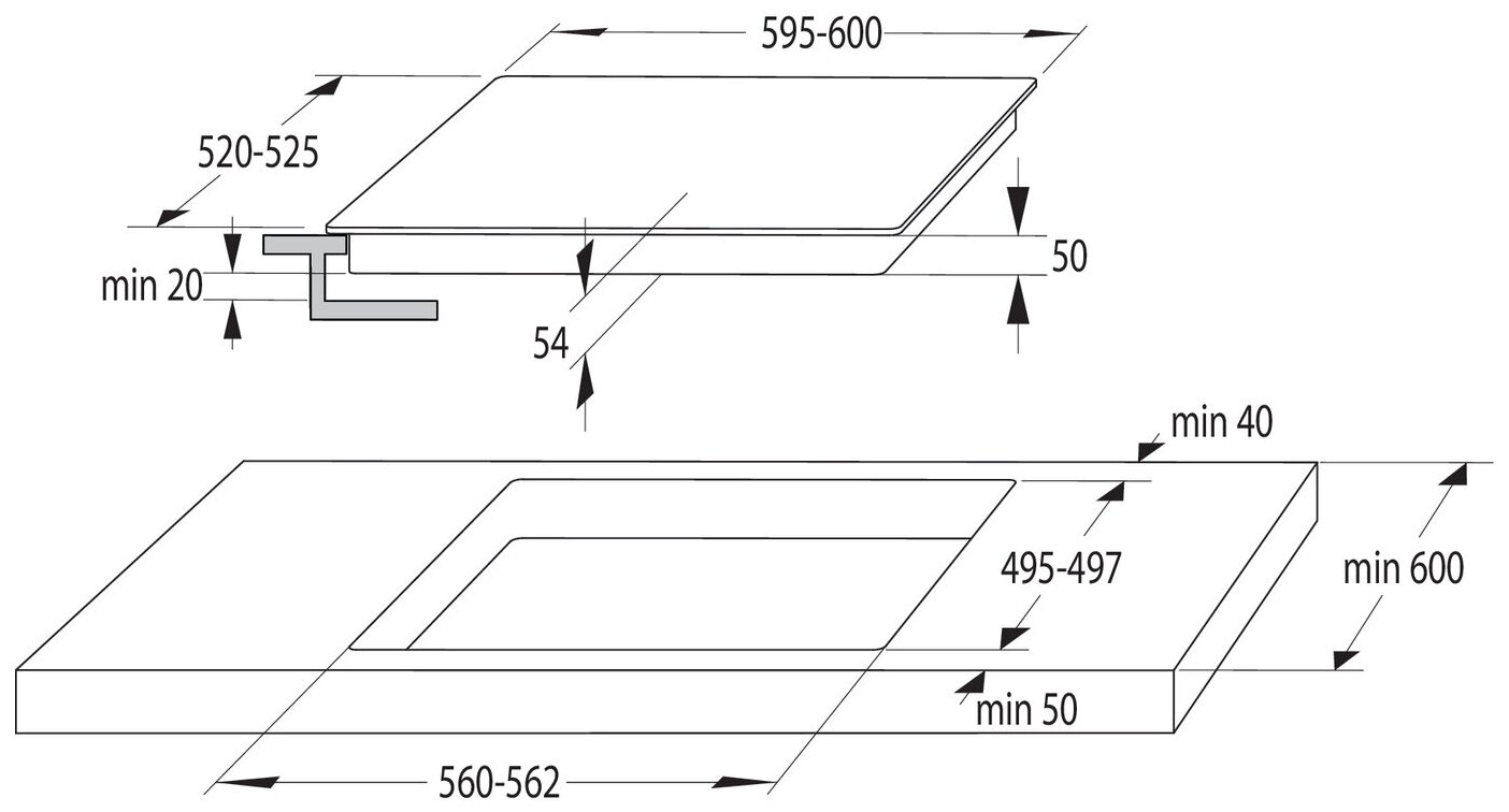 • Размеры для встраивания (ШхГ): 56 x 49 см