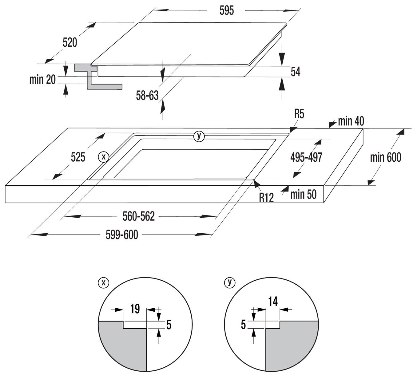 • Размеры для встраивания (ШхГ): 56 x 49 см