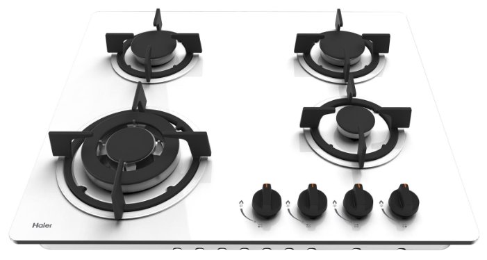 поверхность из закаленного стекла; 4 конфорки; независимая установка; электроподжиг; газ-контроль; чугунные решетки; поворотные переключатели; ШхГ: 58х50 см