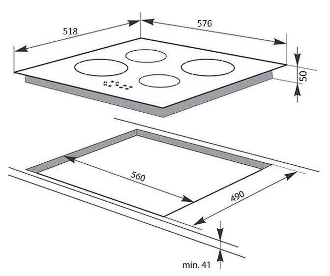 - Размеры для встраивания (ШхГ): 56 x 49 см