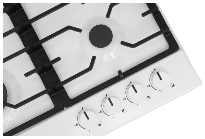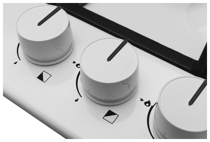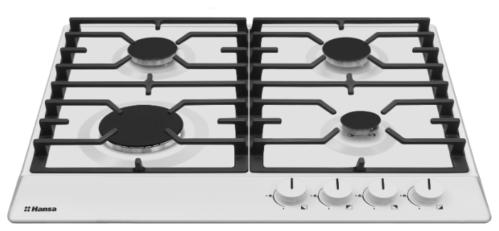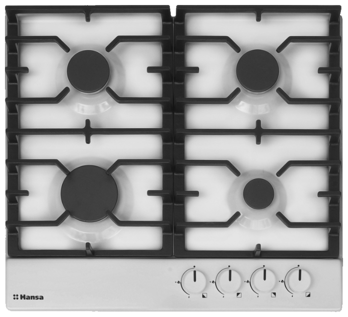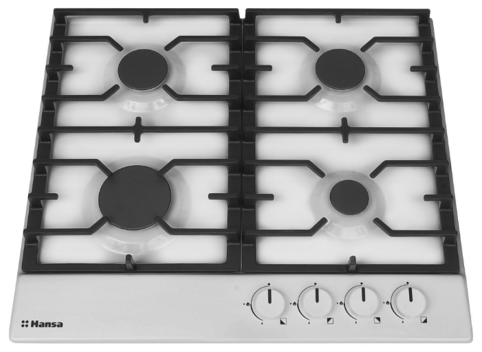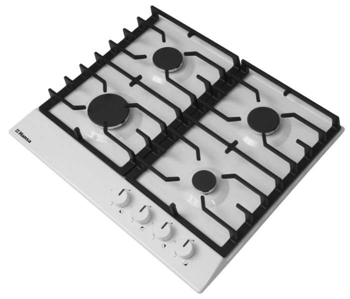 эмалированная поверхность; 4 конфорки; независимая установка; электроподжиг; газ-контроль; чугунные решетки; поворотные переключатели; ШхГ: 59х52 см