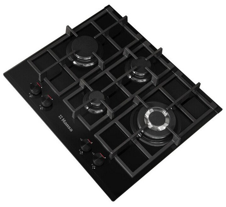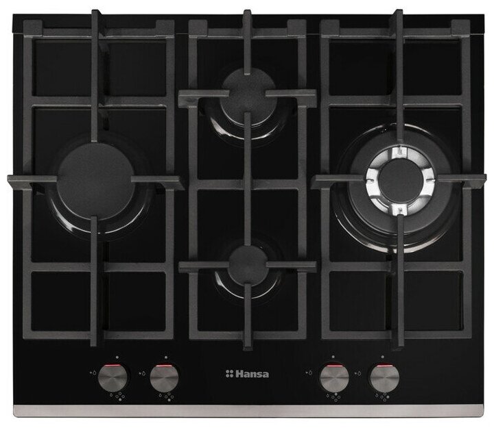 тип панели: газовая, количество конфорок: 4, материал панели: закаленное стекло, установка: независимая, переключатели: поворотные, ширина: 60 см, глубина: 52 см, специальные конфорки: Двойная корона, двухконтурная, безопасность: Газ-контроль