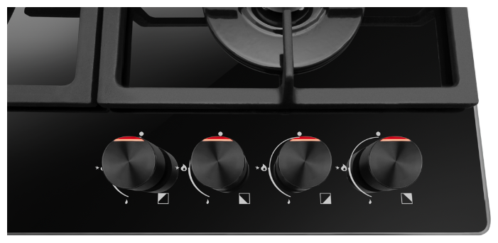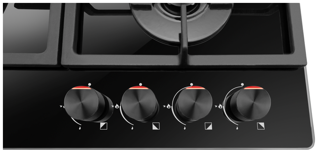 тип панели: газовая, количество конфорок: 4, материал панели: чугун, цвет панели конфорок: черный, установка: независимая, переключатели: поворотные, ширина: 59 см, глубина: 52 см, специальные конфорки: экспресс-конфорка, газ-контроль конфорок