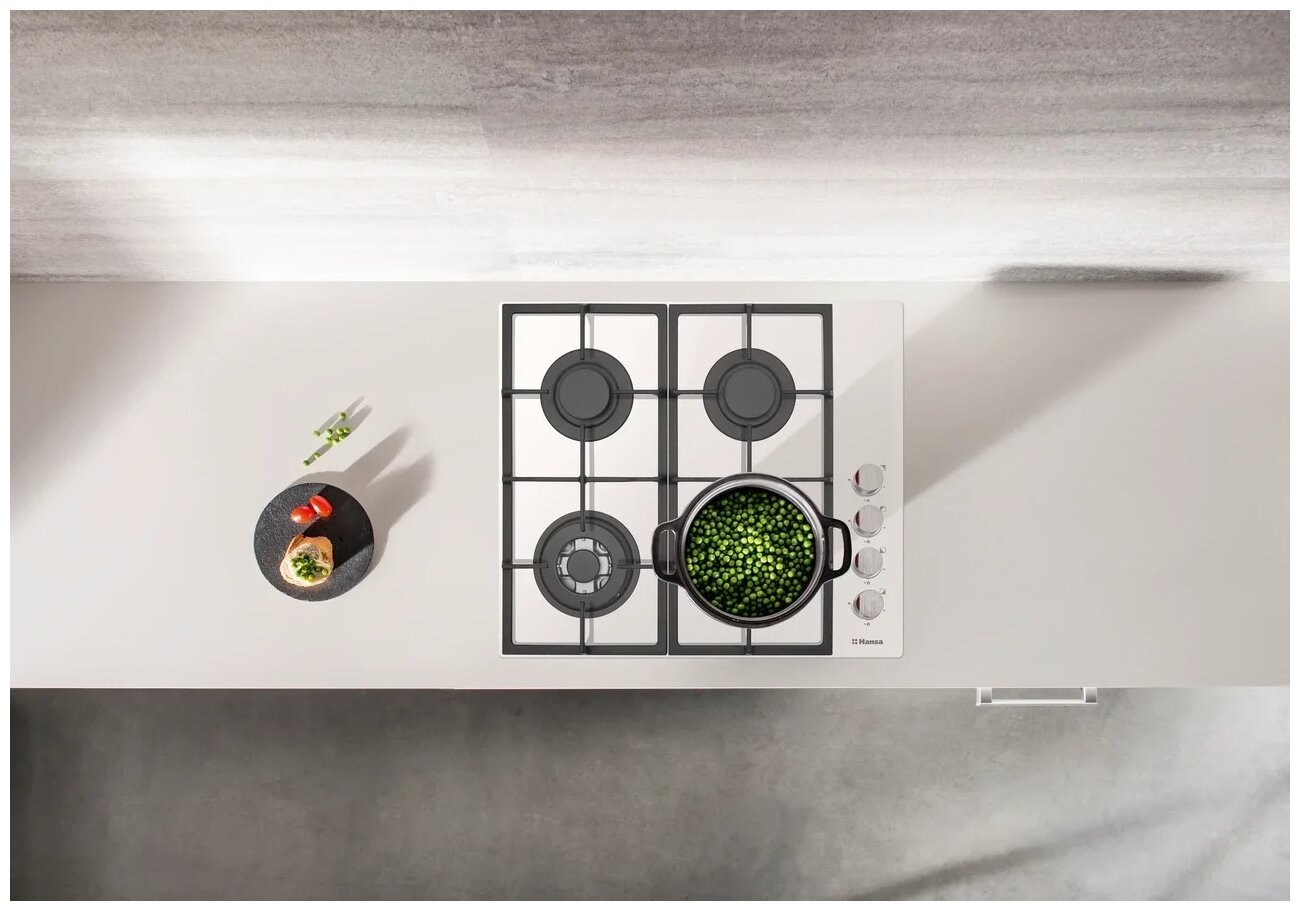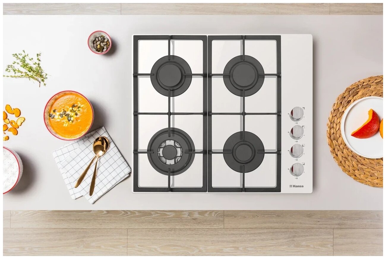 Варочная панель компактная, очень тонкая, из закаленного стекла. Специально искала вариант в белом цвете, чтобы контрастировал с черными решетками. После установки кухня стала выглядеть стильно и более современно. В панели Hansa есть все необходимое: электророзжиг, функция газ-контроль, конфорка WOK. Все работает как часы, без нареканий.
