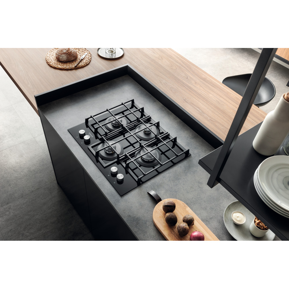 тип панели: газовая, количество конфорок: 4, материал панели: закаленное стекло, установка: независимая, переключатели: поворотные, ширина: 59.60 см, глубина: 51 см, газ-контроль конфорок