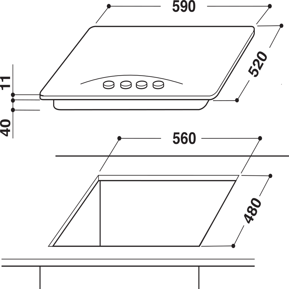 эмалированная поверхность; 4 конфорки; независимая установка; электроподжиг; газ-контроль; чугунные решетки; поворотные переключатели; ШхГ: 59х52 см