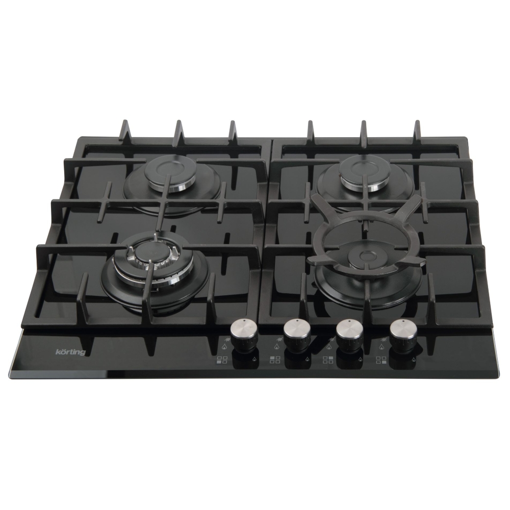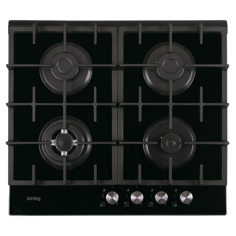поверхность из закаленного стекла; 4 конфорки; независимая установка; электроподжиг; газ-контроль; чугунные решетки; поворотные переключатели; ШхГ: 59х52.50 см