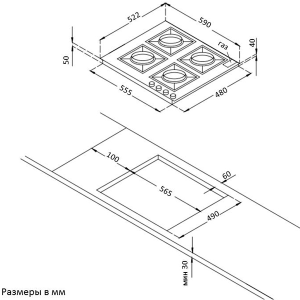 • Размеры для встраивания (ШхГ): 55.5 x 48.5 см