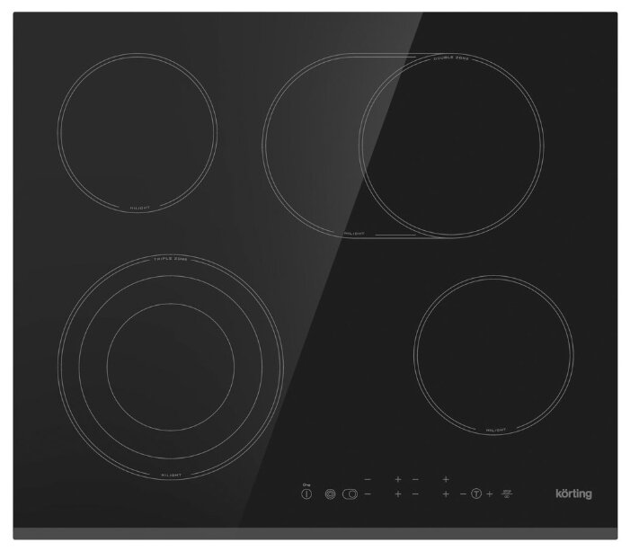 стеклокерамическая поверхность; 4 конфорки; независимая установка; защита от детей; сенсорные переключатели; кнопочное управление; индикатор остаточного тепла; ШхГ: 59.50х52 см