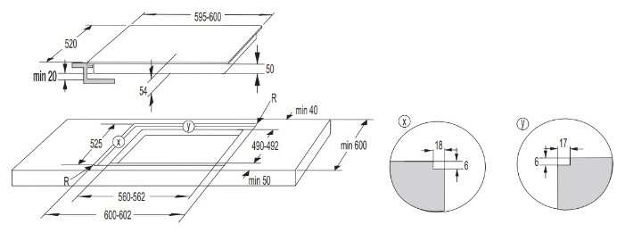 • Размеры для встраивания (ШхГ): 56 x 49 см