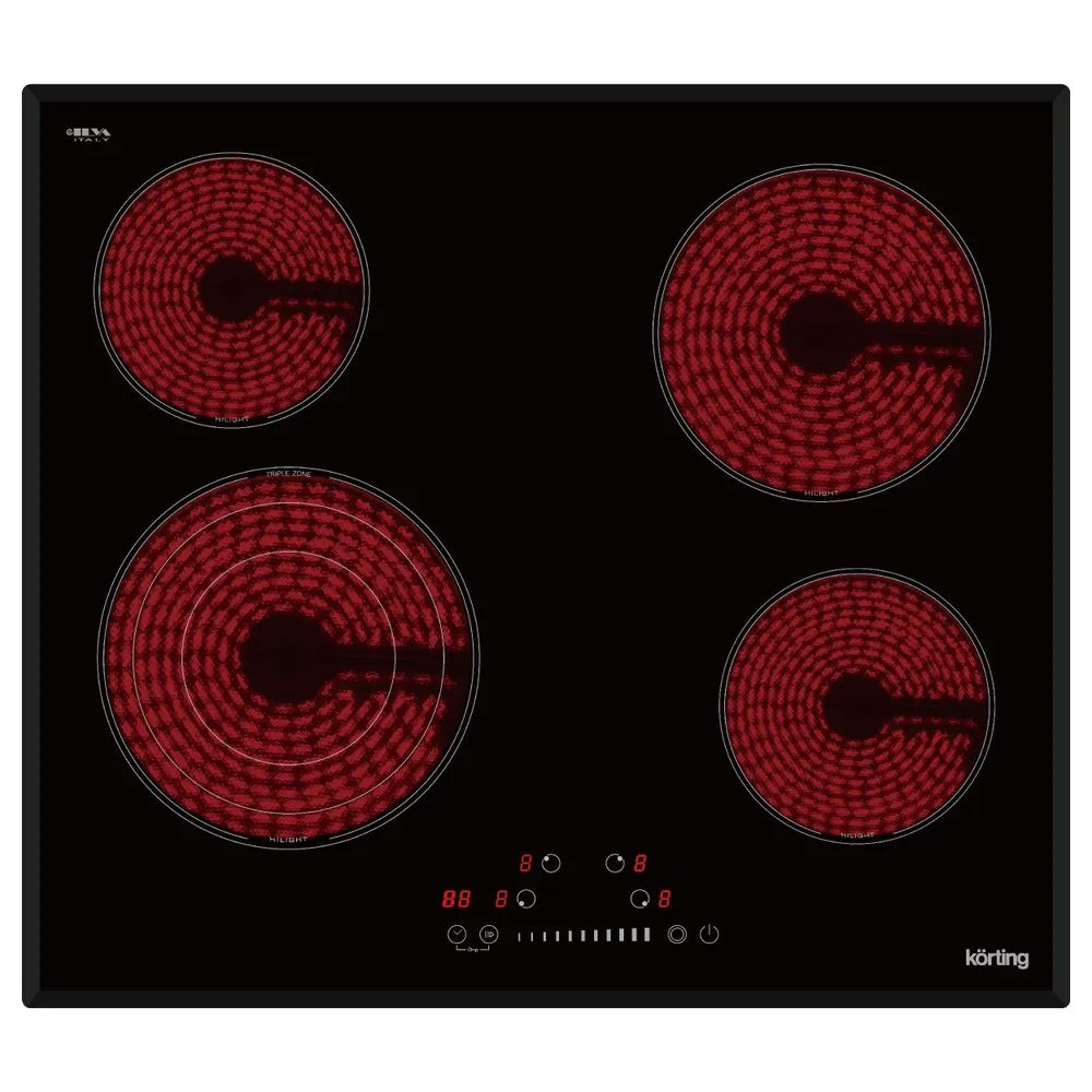 Конфорки: Количество конфорок: 4: Многоконтурные конфорки: Трехконтурная: Количество трехконтурных конфорок: 1: Особые конфорки: HiLight: Рабочая поверхность: Материал рабочей поверхности панели: Стеклокерамика: Установка: Стандартная: Управление: Индикация: Время до отключения, Остаточное тепло, Выбранная мощность: Особенности варочной панели: Пауза в приготовлении: Таймер: Звуковой, С отключением, Электронный: Габариты и вес: Размеры, мм: 520x590x50: Ширина, см: 59: Глубина, см: 52: Размеры ниши для встраивания панели, мм: 560х490: Ширина встраивания, см: 56: Глубина встраивания, см: 49: Минимальная толщина столешницы, мм: 30: Вес товара, г: 8000 Тип: Варочная панель: Основные: Тип панели (плиты): Электрическая: Конструкция панели: Независимая: Мощность варочной панели, Вт: 6500: Системы защиты: Автоотключение, Блокировка от детей, Защита от перегрева: Дополнительные: Тип управления: Сенсорное: Цвет: Черный;