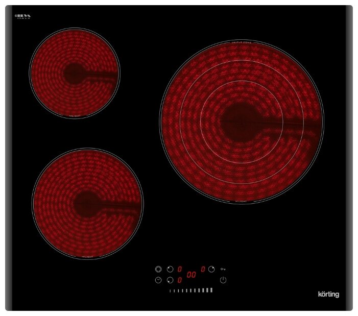 стеклокерамическая поверхность; 3 конфорки; независимая установка; защита от детей; сенсорные переключатели; слайдерное управление; индикатор остаточного тепла; ШхГ: 59х52 см