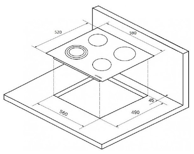 - Размеры для встраивания (ШхГ): 56 x 49 см