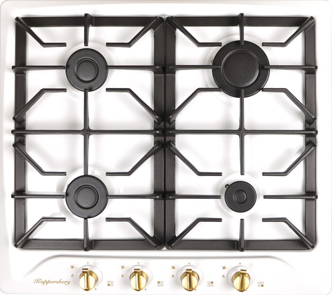 эмалированная поверхность; 4 конфорки; независимая установка; электроподжиг; газ-контроль; чугунные решетки; поворотные переключатели; ШхГ: 59х52.50 см