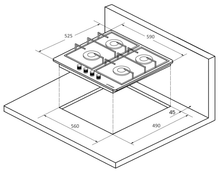 - Размеры для встраивания (ШхГ): 56 x 49 см