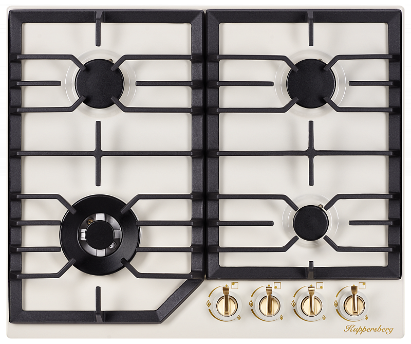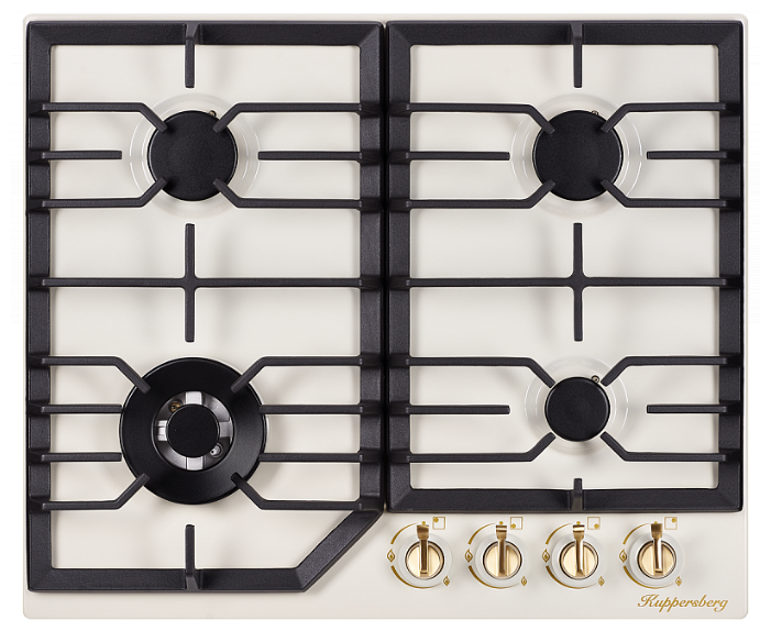 эмалированная поверхность; 4 конфорки; независимая установка; электроподжиг; газ-контроль; чугунные решетки; поворотные переключатели; ШхГ: 61х51 см