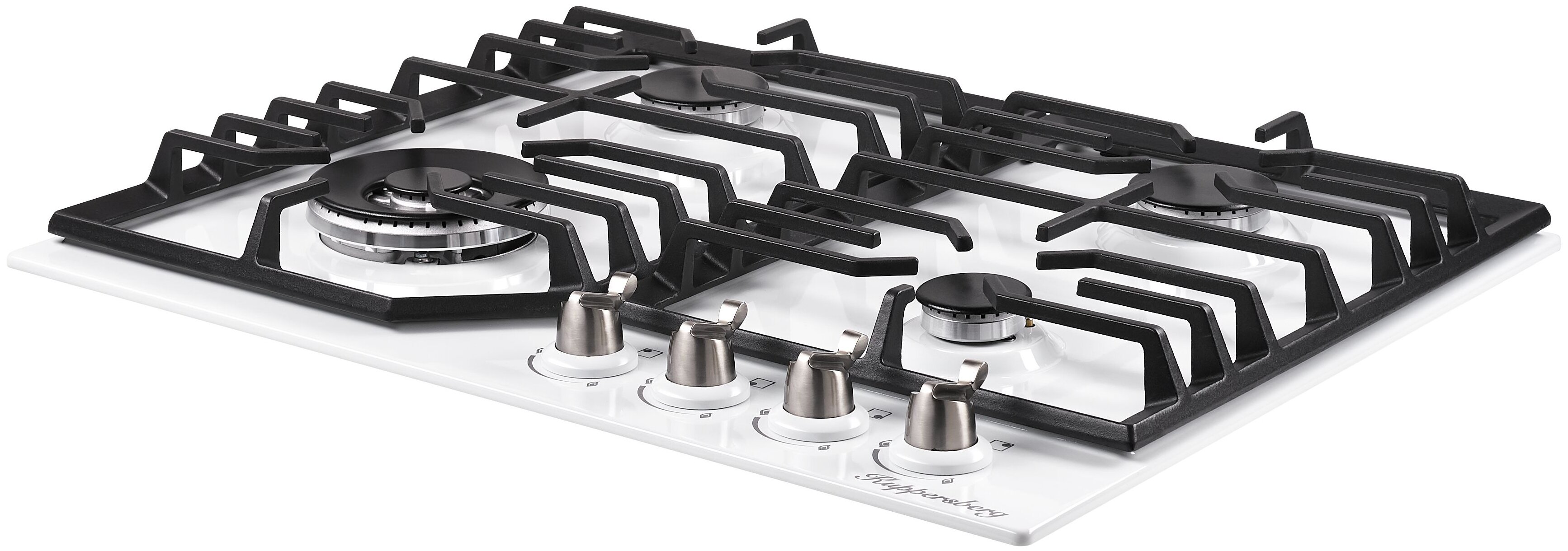 материал панели: эмаль; количество конфорок: 4; установка: независимая; электроподжиг: есть; газ-контроль: есть; чугунные решетки: есть; переключатели: поворотные; ШхГ: 61х51 см