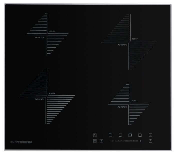 стеклокерамическая поверхность; 4 конфорки; независимая установка; защита от детей; с рамкой; с функцией распознавания наличия посуды; сенсорные переключатели; слайдерное управление; индикатор остаточного тепла; ШхГ: 59х52 см