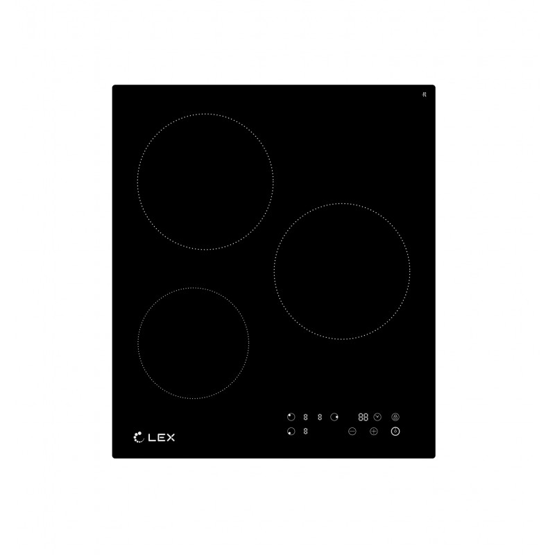 Общие характеристики: Бренд: LEX: Цвет: чёрный: Линейка: EVH: Материал панели: стеклокерамика: Установка: независимая: Тип варочной поверхности: электрическая: Ширина: 45 см: Высота: 4.4 см: Глубина: 51 см: Ширина для встраивания: 42 см: Глубина для встраивания: 49 см: Максимальная потребляемая мощность: 4.8 кВт: Номинальная мощность: 4.8 кВт: Конфорки: Общее количество конфорок: 3: Конфорок электрических: 3: Специальные конфорки: Hi Light, керамическая, экспресс-конфорка: Конфорок керамических: 3: Конфорок Hi Light: 3: Экспресс-конфорок: 2: Необычные конфорки: HiLight: Минимальный диаметр конфорки: 15.5 см: Максимальный диаметр конфорки: 19 см: Размеры конфорок: одна конфорка диаметром 15.5 см, две конфорки диаметром 19 см: Панель управления: Переключатели: спереди: Тип сенсорного управления: кнопочное: Расположение панели управления: спереди: Функции и особенности: Электроподжиг: нет: Тип электроподжига: автоматический: Управление со смартфона: нет: Функции: Быстрый нагрев: Тип таймера: звуковой с отключени
