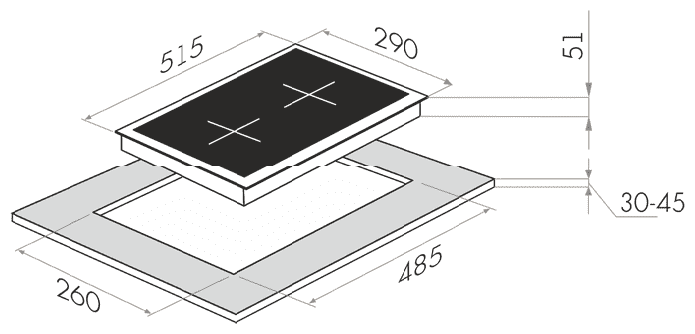 - Размеры для встраивания (ШхГ): 26 x 48.5 см
