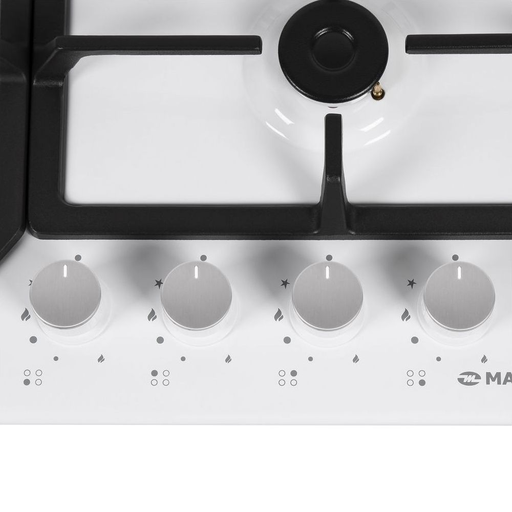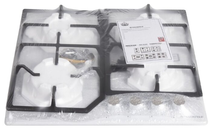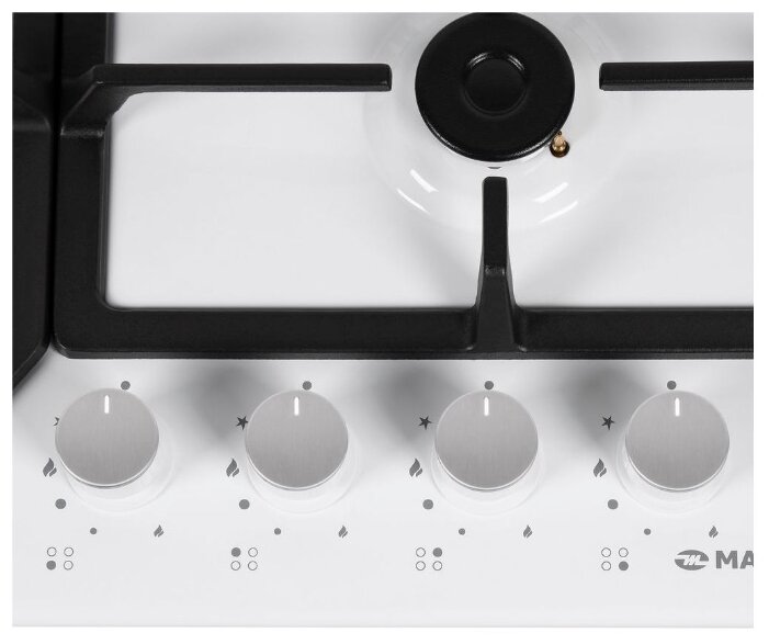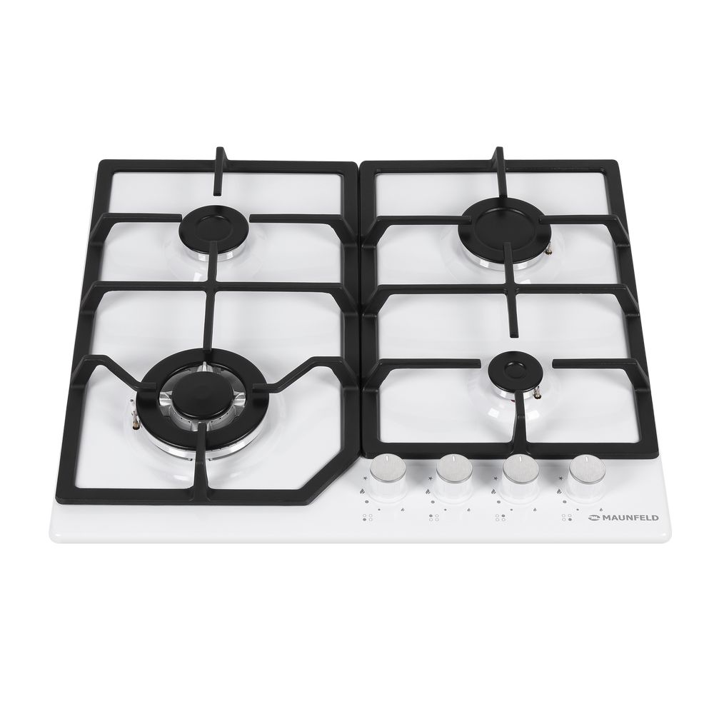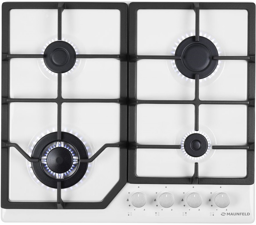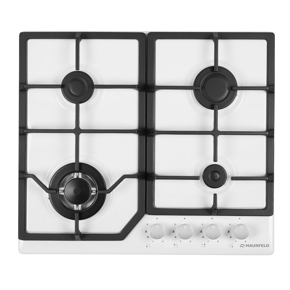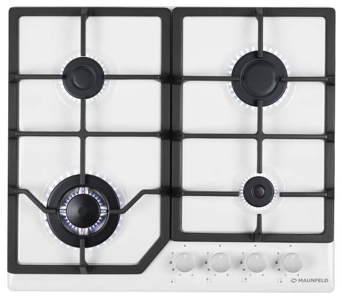 эмалированная поверхность; 4 конфорки; независимая установка; электроподжиг; газ-контроль; чугунные решетки; поворотные переключатели; ШхГ: 59х51.50 см