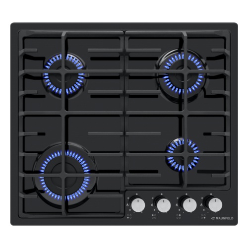 Панель конфорок: эмаль ; Всего конфорок: 4 шт ; Переключатели: поворотные ; Электроподжиг: да ; Газ-контроль конфорок: да ; WOK конфорка: нет ; Цвет панели конфорок: черный ; Ширина: 56 см ; Чугунные решетки: да