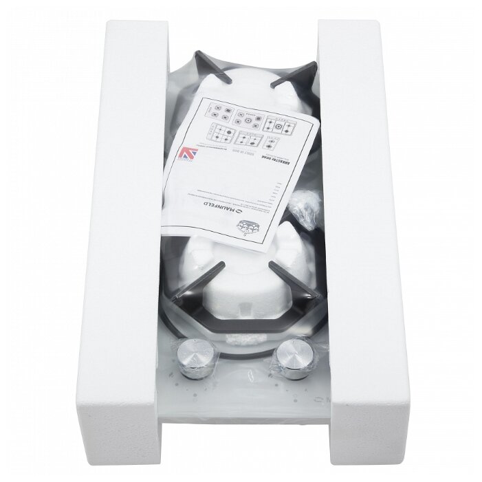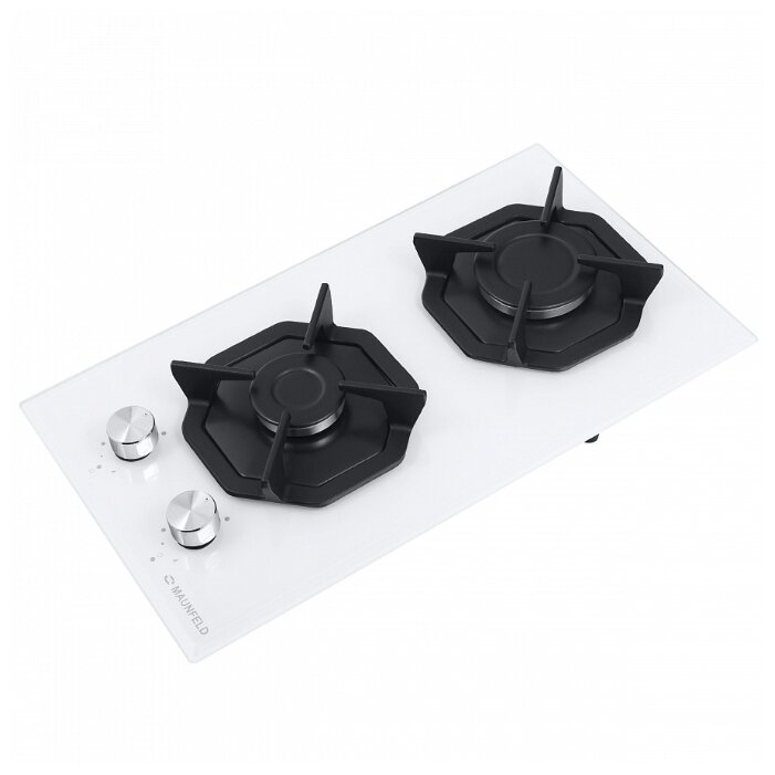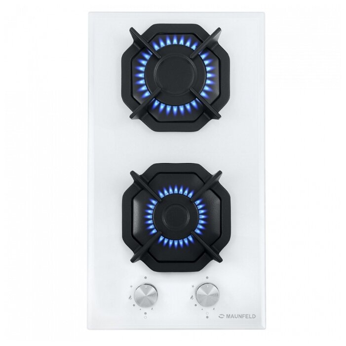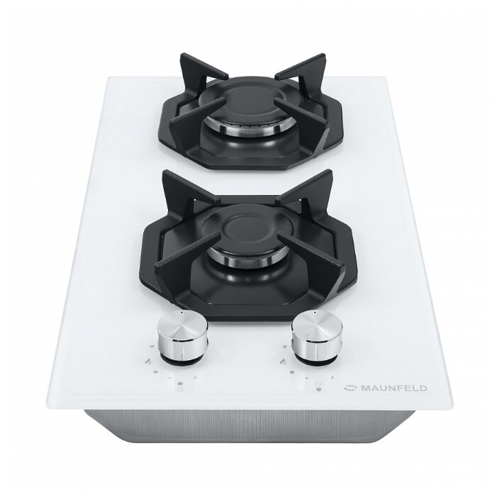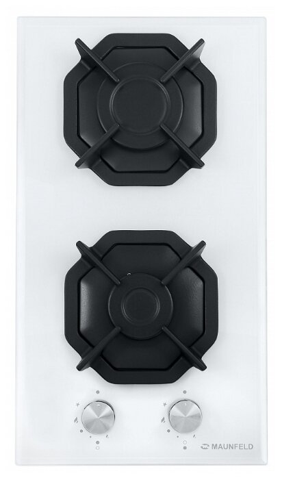 поверхность из закаленного стекла; 2 конфорки; независимая установка; электроподжиг; газ-контроль; чугунные решетки; поворотные переключатели; ШхГ: 29х51.50 см