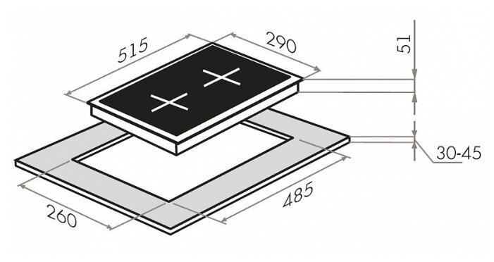 - Размеры для встраивания (ШхГ): 26 x 48.5 см