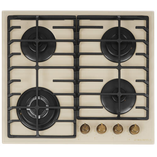 Тип газовая варочная поверхность; Основной цвет бежевый; Дополнительный цвет золотистый; Конфорки; Всего конфорок 4 шт; Материал изготовления панели конфорок закаленное стекло; Материал решеток чугун; Газ-контроль конфорок есть; Конфорок "Двойная корона" нет; Конфорок "Тройная корона" 1 шт; Овальная зона нагрева нет; Вок-конфорка/подставка конфорка; Панель управления; Вид управления поворотный механизм; Электроподжиг есть; Активация электроподжига встроенный в поворотную ручку; Кнопка блокировки работы поверхности нет; Установка и подключение; Вид газа сжиженный (пропан-бутан), природный (метан); Дополнительные форсунки в комплекте есть; Дополнительная информация; Дополнительно конфорки SABAF; Питание; Общая мощность газовых конфорок 8.2 кВт; Напряжение питания 220-240В/50-60Гц; Потребляемая мощность в спящем режиме нет; Мощность в выключенном режиме нет; Габариты встраивания; Ширина встраивания 56 см; Высота встраивания 5.1 см; Глубина встраивания 48.5 см; Габариты и вес; Ширина 59 см; Глубина 51.5 см; Вес