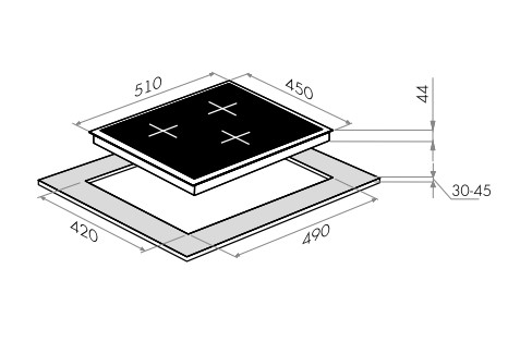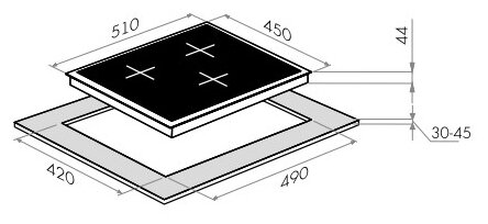 - Размеры для встраивания (ШхГ): 42 x 49 см