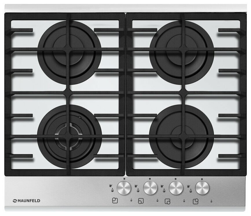 материал панели: закаленное стекло; количество конфорок: 4; установка: независимая; электроподжиг: есть; газ-контроль: есть; чугунные решетки: есть; переключатели: поворотные; ШхГ: 60х51 см