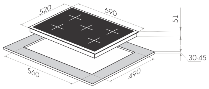 - Размеры для встраивания (ШхГ): 56 x 49 см