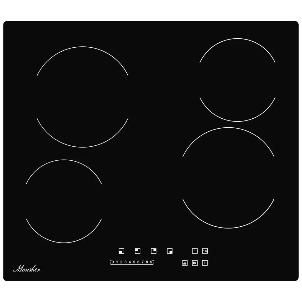 Установка: независимая: Тип панели: электрическая: Ширина: 59 см: Высота: 5.2 см: Глубина: 52 см: Ширина для встраивания: 56 см: Глубина для встраивания: 49 см: Номинальная мощность: 6 кВт: Конфорки: Материал панели: стеклокерамика: Общее количество конфорок: 4: Конфорок электрических: 4: Специальные конфорки: Hi Light, керамическая: Конфорок керамических: 4: Конфорок Hi Light: 4: Минимальный диаметр конфорки: 16.5 см: Максимальный диаметр конфорки: 20 см: Панель управления: Переключатели: сенсорные: Тип сенсорного управления: кнопочное: Расположение панели управления: спереди: Функции и особенности: Управление со смартфона: нет: Функции: таймер: Безопасность: защитное отключение конфорок, индикатор остаточного тепла, кнопка блокировки панели: Возможность работы от газового баллона: нет: Дополнительная информация: 3 режима готовки, 9 уровней мощности;;;