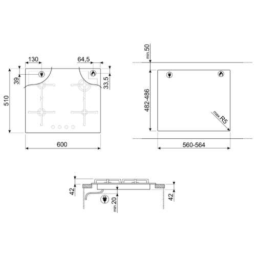 - Размеры для встраивания (ШхГ): 56 x 48.2 см
