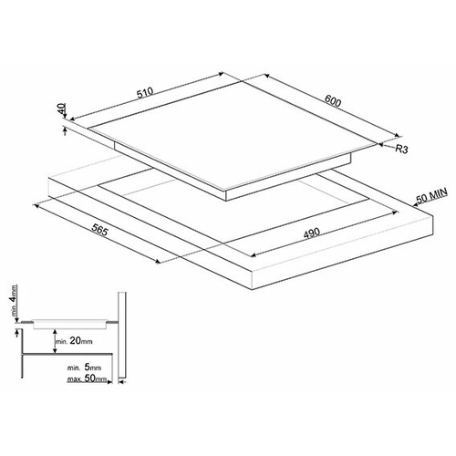 - Размеры для встраивания (ШхГ): 56.5 x 49 см