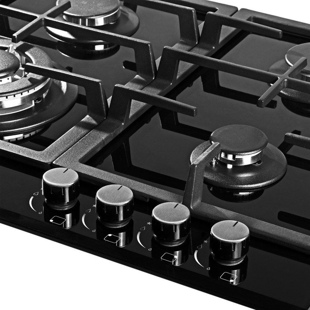 Очень стильная газовая варочная панель ,Комфорка WOK нагревает чайник за пару минут Газ-контроль конфорок. Электроподжиг. Поверхность легко моется, разводы убираются средством для мытья окон Недостатки: