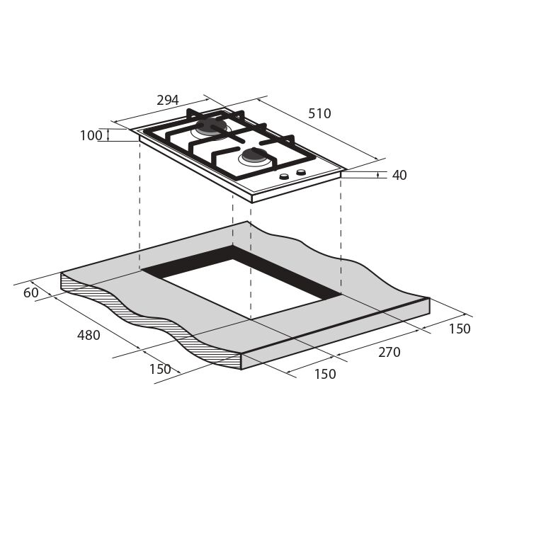 ТЕХНИЧЕСКИЕ ХАРАКТЕРИСТИКИ: Цвет: Черный: Высота (см): 10: Материал поверхности: Закалённое стекло: Ширина (см): 29,4: Газ-контроль: Да: Глубина (см): 51: Автоматический электроподжиг: Да: Размеры ниши для встраивания (ШхГ) (см): 27x48: Количество конфорок: 2: Вес нетто (кг) : 7,5: Конфорка быстрого нагрева (WOK): Да: Вес брутто (кг) : 8,5: Материал решётки: Чугун: Дополнительная информация: Мощная WOK-конфорка с 2 рассекателями и тройным контуром огня, Металлические дизайнерские ручки, Форсунки для конверсии(природный/сжиженный) газа в комплекте;;