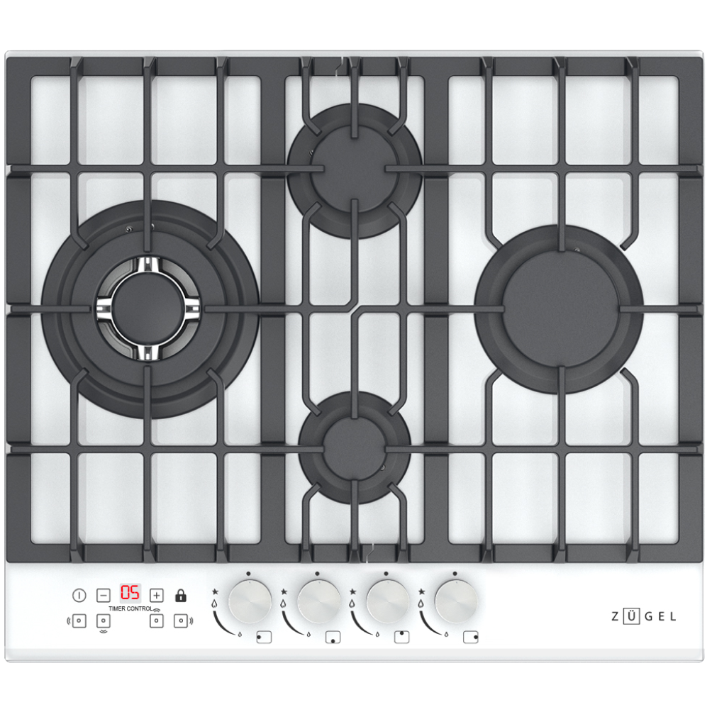 Цвет: Белый: Высота (см): 10: Материал поверхности: Закалённое стекло: Ширина (см): 58,4: Газ-контроль: Да: Глубина (см): 51,8: Автоматический электроподжиг: Да: Размеры ниши для встраивания (ШхГ) (см): 56x48: Количество конфорок: 4: Вес нетто (кг) : 14,2: Конфорка быстрого нагрева (WOK): Да: Вес брутто (кг) : 16,1: Материал решётки: Чугун: Дополнительная информация: Мощная WOK-конфорка с 2 рассекателями и тройным контуром огня, Металлические дизайнерские ручки, Технология "газ на стекле", Форсунки для конверсии(природный/сжиженный) газа в комплекте;