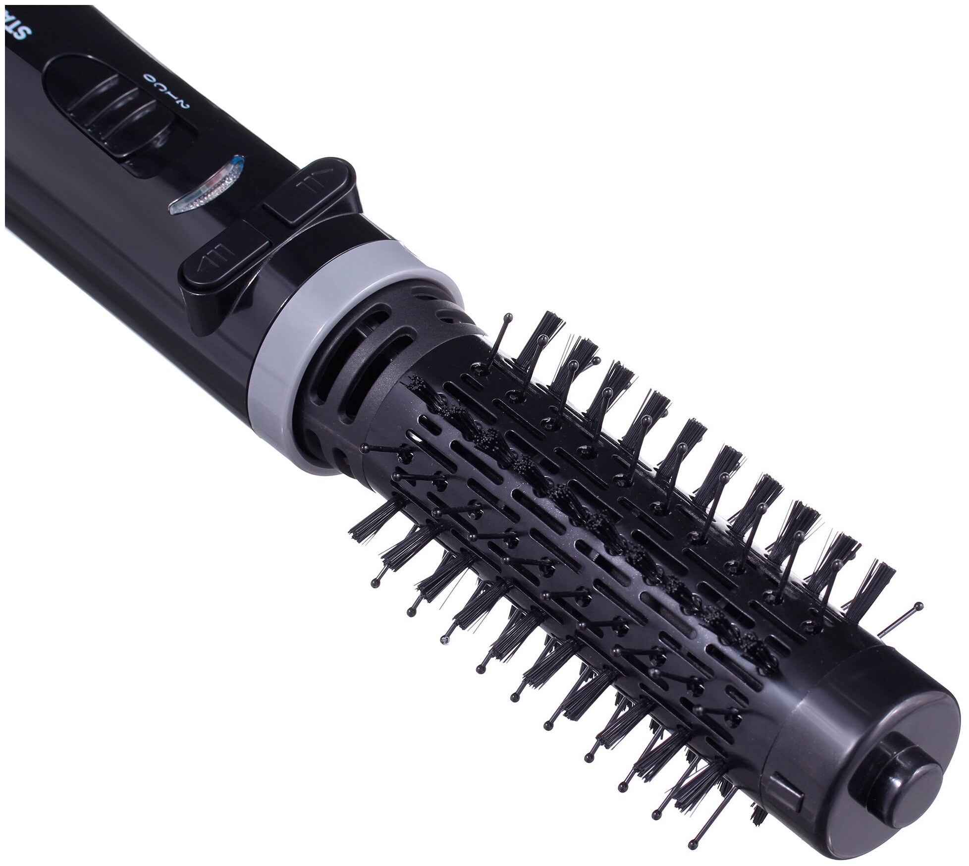в нем две скорости, и мне понравилось что он вращается в обе стороны. мне показалось что он даже быстрее фена сушит волосы и в добавок я еще получаю красивую прическу. Моя рука полностью обхватывает ручку и его удобно держать. Недостатки: