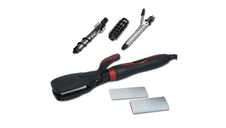 тип щипцов: мультистайлер; насадка-щетка, насадка-щипцы для завивки, насадка-гофре, насадка для выпрямления волос, насадка для спиральной укладки; мощность: 25 Вт; индикация включения