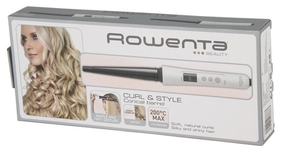 тип: стайлер, покрытие: турмалиновая керамика, тип щипцов: конические, назначение: завивка, укладка, максимальная температура нагрева: 200 °C, количество режимов нагрева: 9, мощность: 36 Вт, особенности: дисплей, петля для подвешивания, вращение шнура, индикация готовности к работе