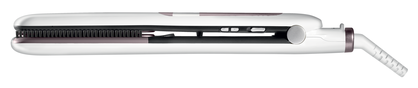 тип: выпрямитель, покрытие: керамическое, назначение: выпрямление, дополнительные функции: автоматическое отключение, ионизация, защита от перегрева, ширина пластин: 25 мм, максимальная температура нагрева: 200 °C, количество режимов нагрева: 8, мощность: 240 Вт, особенности: индикация включения, дисплей, петля для подвешивания, вращение шнура, зубчики на насадке для выпрямления, насадки в комплекте: для выпрямления