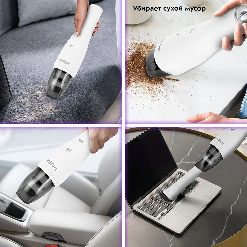Характеристики : Вес товара, г 637: Размеры, мм 310 х 72 х 72: Особенности Подсветка зоны уборки: Комплектация:: Насадки пылесоса: Комбинированная насадка: Время работы от аккумулятора, мин 12: Вид питания Встроенный аккумулятор: Тип Ручной пылесос: Страна-изготовитель Китай: Вид пылесборника Контейнер: Тип уборки Сухая: Объем пылесборника, мл 150: Вид фильтра Микрофильтр, Моторный фильтр, HEPA фильтр: Макс. уровень шума, дБ 80: Работа от аккумулятора Да: Цвет Белый: Потребляемая мощность, Вт 70;;