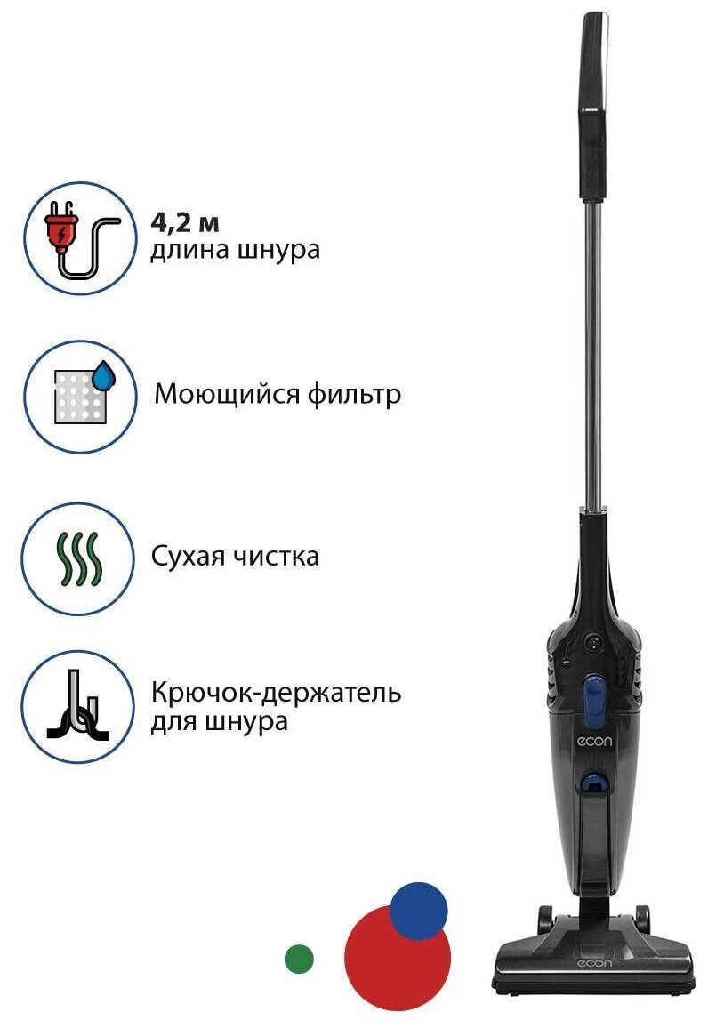 тип уборки: сухая, дополнительные функции: автоматическое сматывание шнура, особенности конструкции: ножной переключатель вкл./выкл.
