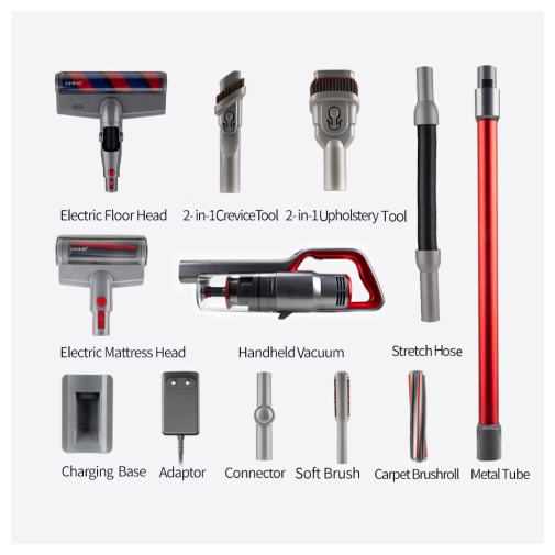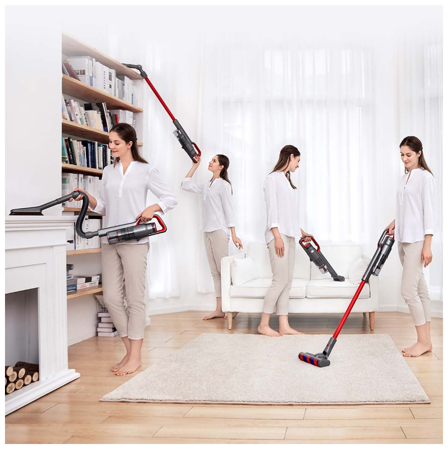 - Насадки в комплекте: для узких мест; для мебели; для матрасов; для деликатной уборки; щетка для ковров