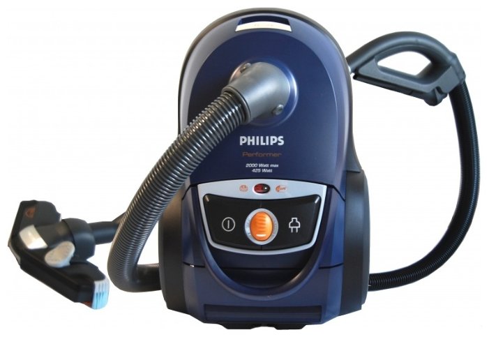 тип уборки: сухая; пылесборник: мешок, 4 л; мощность всасывания: 425 Вт; потребляемая мощность: 2000 Вт; особенности: индикатор заполнения пылесборника, регулятор мощности на корпусе; труба всасывания: телескопическая