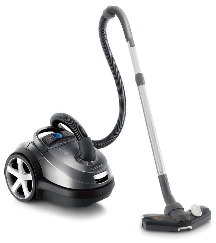 Это монстр, маньяк, убийца! Любой мужчина, взявший его трубу в руки, почувствует себя Терминатором!Турбощетка (в комплекте этого пылесоса ее нет, у меня универсальная от swirl) ревет как турбодвигатель, и, в отличии от прошлого пылесоса, ее не надо чистить, волосы от моего короткошеостного кота в ней вообще не задерживаются.Теперь к недостаткам: Такой пылесос нельзя покупать, если уборкой занимается только женщина. Филипс сэкономил, в нем регулятор мощности находится на самом пылесосе, а на трубе даже нет клапана для сброса воздуха! У женщины просто не хватит сил вытащить случайно засосавшую штору! Филипс, на чем ты экономишь?! Мужики, да в линейке 9000 есть на много более дорогой пылесос с регулятором на ручке, для женщин пойдет только он! А то получится как в том анекдоте, - купил жене Дефайндер, на нем можно тундру по диагонали пересекать, а ей не надо тундру, ей детей в школу отвезти...Дальше, - нет смысла переплачивать за этот пылесос, если у вас нет ковров, именно на коврах он король, а на плоскости, по инструкции, предлагается снижать мощность. Да, ежели на полной мощности пылесосить плоскость, то он просто к ней присасывается намертво. Зачем платить, если не использовать его целиком?Треугольную насадку я не понял. Зачем на ней угол? Он ничего не дает, кроме трудности обработки углов. Прямая насадка была бы удобней (она предлагается в опциях, это маркетинговых ход?)Еще из минусов отсутствие на пылесосе отсека для хранения доп. насадок. Ну, это просто не удобно.Длина шнура 10 метров, для моей квартиры с избытком, но получил плюс, - меньшее число "стоянок".Эксплуатирую этот пылесос уже 4 месяца. Первого мешка, в моей квартире, 45 кв.м хватило (ТАРАМ!!) на 3 (ТРИ!!) месяца, Супер! И то, сменил не совсем заполненный. Да, чуток мощность на почти полном падает, но это не криминально))В общем, я пылесосом доволен. Достоинства: