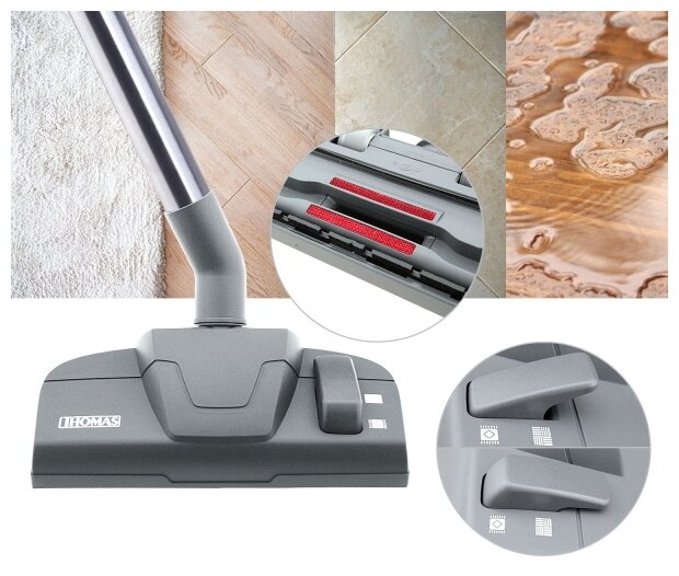 Отличный моющий пылесос, работает тихо, в сравнении со старым. Мощность всасывания регулируется. Очень много различных насадок. Недостатки: